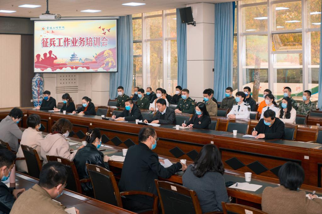 研工部、招就处负责人,各二级学院党委、党总支副书记和负责就业工作的辅导员,2022年大学生征兵宣讲员参加了会议。(武装部 文/段振业 图/张平 审核/李迪)