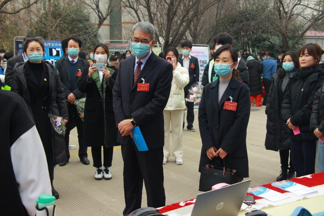 在大会开幕式后的休会期间,与会领导饶有兴致地观看了beat365官网第六届“明理杯”科技学术节科技学术作品路演,详细了解了各学院在科技学术节期间的特色项目,并与同学们进行了亲切交谈。