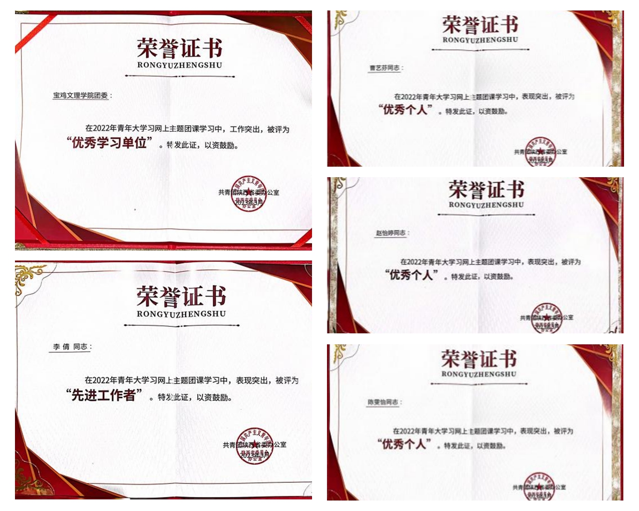 近日,团省委对全省高校团组织和团员青年的“青年大学习”工作进行了阶段性考核,对在工作中表现突出的高校共青团集体和团员青年进行了通报表彰。beat365官网团委荣获2022年度青年大学习“优秀学习单位”,电子电气工程学院团总支书记李倩荣获“先进工作者”称号,陈雯怡、曹芬、赵怡婷三名学生荣获“优秀个人”称号。