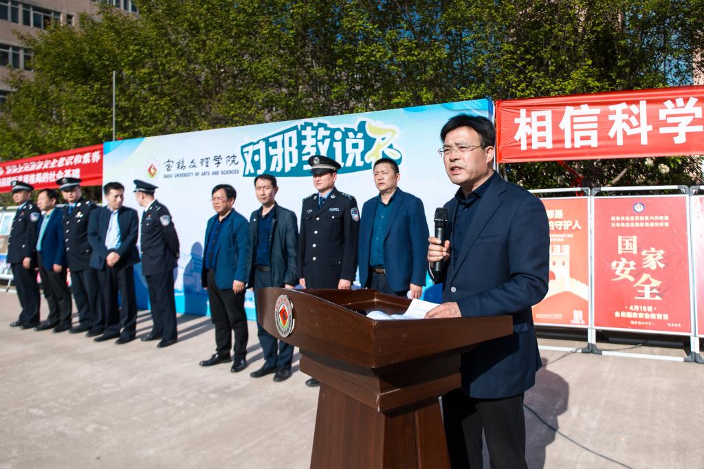 今年4月15日是第八个全民国家安全教育日。为进一步增强全民国家安全意识,引导广大师生树牢总体国家安全观,4月14日,学校邀请宝鸡市公安局经文保支队和高新公安分局在高新校区共同开展“4.15”全民国家安全教育日宣传活动。副校长韩干校出席活动,活动由保卫处处长李迪主持。