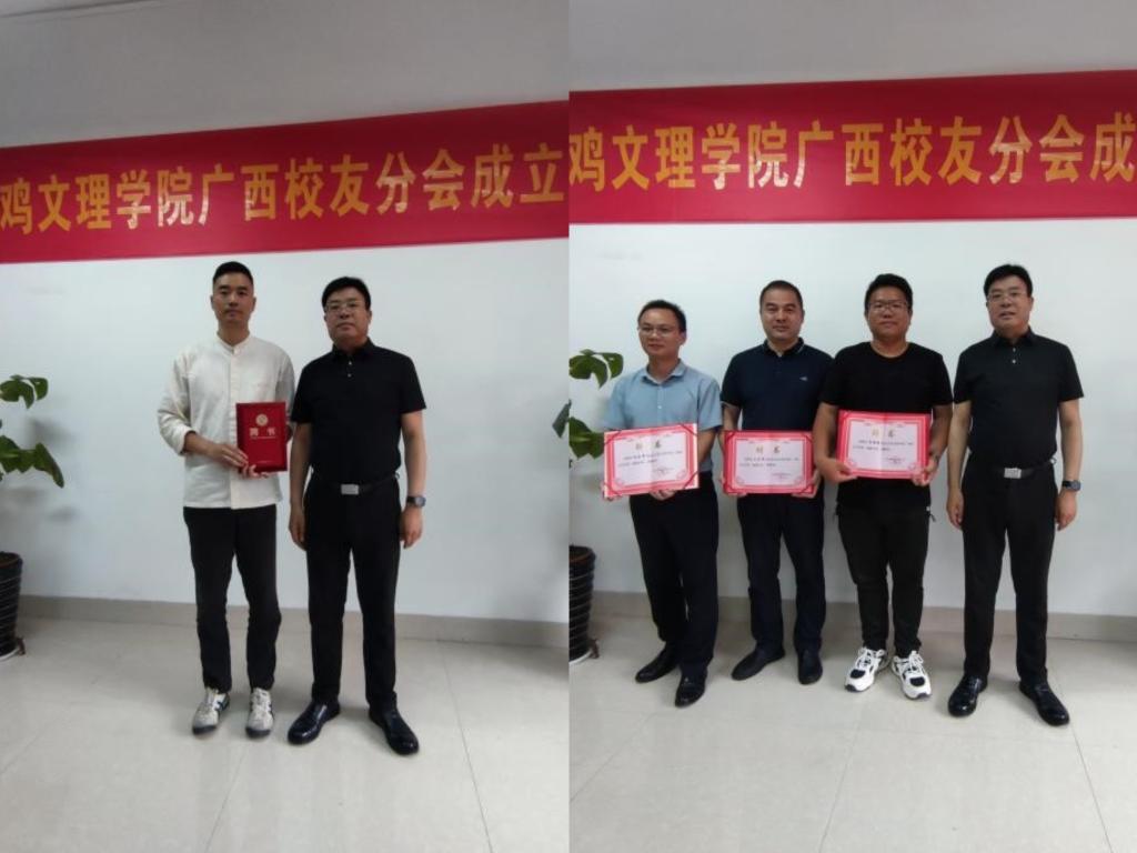 杨勇刚汇报了广西校友分会筹建情况,并作表态发言。他表示,广西校友分会将凝聚校友力量,发扬“博文明理、厚德尚能”的文理人精神,为母校的高质量发展建言献策、贡献力量,并祝福母校蓬勃发展,祝愿各位校友工作顺利。南宁市兴宁区政协委员、民建广西区直城区总支副主委、广西利久通商贸有限公司总经理李金虎祝贺广西校友分会成立,希望广西校友之间加强联系、互相帮助、共同发展,祝愿广西校友分会越办越好。深圳校友分会副会长田小龙代表兄弟校友分会对广西校友分会的成立表示祝贺,并介绍了深圳校友分会的基本情况和主要做法,表示将加强交流,回馈母校。广西地震局监测预报与科技处(应急服务处)二级调研员吴小龙、广西建设职业技术学院纪委办副主任吴锋等校友深情回顾了在母校的学习生活情况,感恩母校老师的教诲与培养,祝福母校明天更加美好。