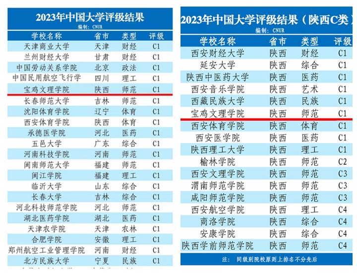 6月16日,2023年中国大学评级结果于中国大学排行榜官网(CNUR)发布,排名结果显示,共有846所公办本科层次院校(除军事类)上榜,beat365官网综合实力评价等级为C1,位居同类高校前列。