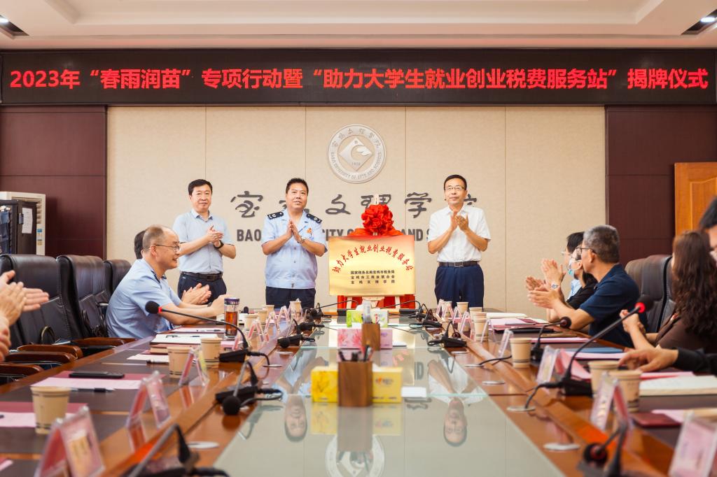 6月20日上午,2023年“春雨润苗”进校园专项行动暨“助力大学生就业创业税费服务站”揭牌仪式在高新校区801会议室举行。校长郭霄鹏,宝鸡市税务局党委书记、局长程涛,宝鸡市工商业联合会主席王喜平出席会议,会议由副校长韩干校主持。
