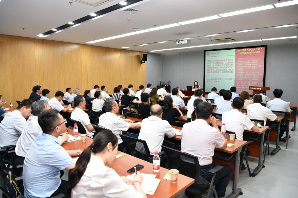 参观学习前,西安交通大学党委宣传部副部长史瑞琼作了《西迁精神的历史实践与内涵升华——学习习近平总书记关于西迁精神重要讲话》专题辅导报告。报告围绕习近平总书记对15位西迁老教授来信作出重要指示,从西迁历程、西迁故事、西迁精神等方面,讲述了西迁精神的形成和发展、内涵意义以及时代价值,讴歌了老一辈西迁人胸怀大局、无私奉献、艰苦创业的感人事迹,展现了新一代“西迁精神”传承者们持续弘扬奋斗精神、砥砺前行的风范。