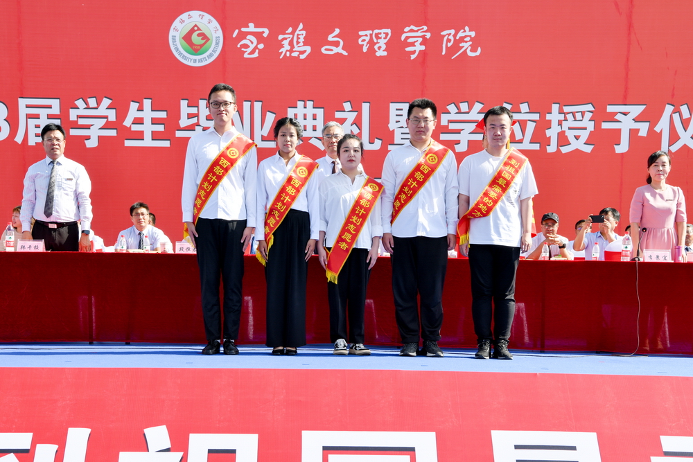 韩干校宣读了2023届毕业资格审查结果、学位授予决定和优秀毕业生表彰决定。学校党政领导为省级优秀毕业生、优秀学生干部、校级优秀毕业生代表颁发荣誉证书,为“‘秦岭才俊’博士奖、硕士奖”获奖学生代表颁发荣誉证书和奖金,为西部计划志愿者佩戴绶带。毕业生代表为教师代表和家长代表献花,表达了对学校、老师辛勤培育的感激之情及对父母养育的感恩情意。