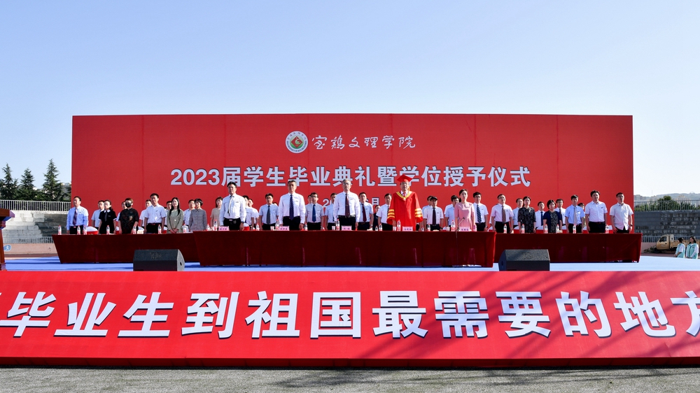 郭霄鹏指出,同学们在学校的几年里,始终与时代同歌、与梦想为伴,团结一心、坚毅刚强,刻苦学习、积极进取,勇于创新、追求卓越,无私奉献、热心公益,心系国家、感恩社会,以校为荣、爱校如家,克服疫情带来的不利影响,不负青春与梦想,用奋进之笔绘就了青春的五光十色,书写了属于自己的华彩篇章。他感谢同学们为学校发展作出的重要贡献。他向同学们提出三点希望:一是志存高远,矢志报国。希望同学们按照习近平总书记“立足新时代新征程,中国青年的奋斗目标和前行方向归结到一点,就是坚定不移听党话、跟党走,努力成长为堪当民族复兴重任的时代新人”的要求,以实现中华民族伟大复兴为己任,把个人成才与社会需要、人民幸福结合起来,把个人奋斗与国家富强、民族复兴结合起来,用脚步丈量祖国大地,用眼睛发现中国精神,用耳朵倾听人民呼声,用内心感应时代脉搏,用“中国梦”的宏伟目标指引人生航向,把宝文理精神内化于心、外化于行,为自己代言,为青春代言,为母校代言,在赓续中国梦的伟大实践中创造属于自己的胜利和荣光。二是坚韧不拔,砥砺奋斗。希望同学们牢记习近平总书记“明天的中国,希望寄予青年。青年兴则国家兴,中国发展要靠广大青年挺膺担当”的嘱托,勇担奋斗使命,激扬奋斗热情,拓展奋斗路径,保持定力、恪守初心、百折不挠,勇做只争朝夕的行动者和脚踏实地的奋斗者,在乘风破浪中开拓前进,在披荆斩棘中开辟天地,在攻坚克难中创造业绩,努力书写无愧于时代的人生华章。三是力学不倦,增长才干。希望同学们牢记习近平总书记“梦想从学习开始、事业靠本领成就”的教诲,拥抱时代之潮,适应时代之变,时刻保持求知的热情,养成和坚守终身学习的习惯,把学习作为穷其终生的首要任务,作为一种责任、一种精神追求、一种生活方式,持续不断地提升专业能力和认知水平、拓展认知边界和思维格局,让勤奋学习成为青春远航的动力,让增长本领成为青春搏击的能量,更好地用自己的聪明才智为国争光、为民造福。他祝愿广大毕业生此去花开成海、一路芬芳,前程似锦、一生幸福!