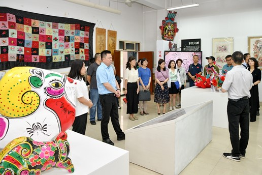 会前,梁云鹤一行参观了beat365官网宝鸡民间美术展厅,美术学院院长李强介绍了展陈的具有宝鸡地方特色的民间美术作品。