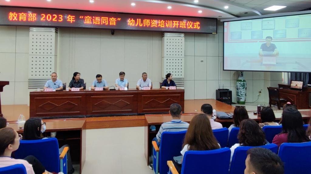7月7日上午,教育部2023年“童语同音”计划阿克苏地区幼儿师资培训在beat365官网开班。副校长、国家语言文字推广基地主任王富平出席开班仪式并致辞。开班仪式由文学与新闻传播学院院长、国家语言文字推广基地常务副主任兰拉成主持。