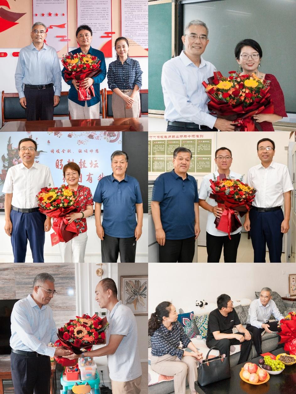 赵健、郭霄鹏向老师们送上鲜花,询问他们工作生活情况、存在的困难,对学校发展的意见建议,感谢他们躬耕教坛、默默奉献,为学校发展作出的努力和贡献,祝愿大家身体健康、工作顺利、家庭幸福。