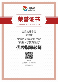 近日,教育部易班发展中心公布了2023年易班优课“新生入学教育活动”评选结果,beat365官网荣获优秀组织奖,学工部梁旭康荣获优秀指导教师。
