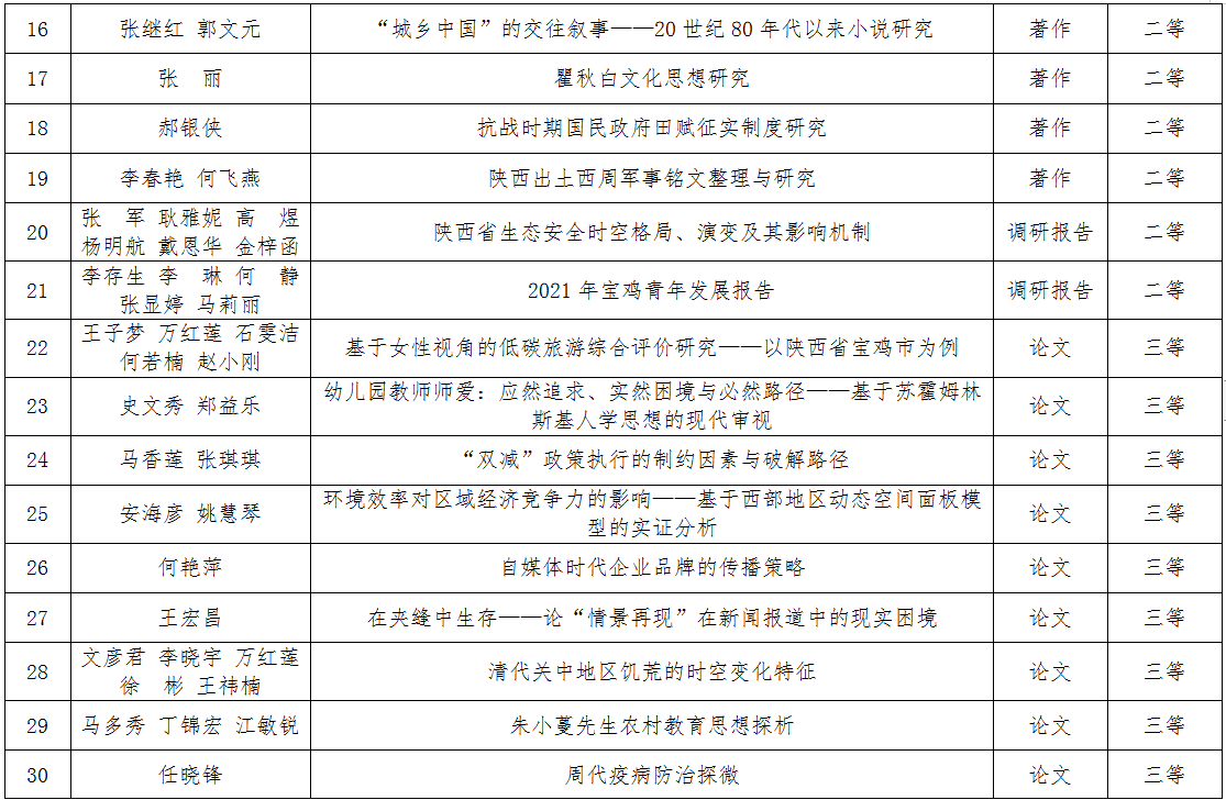 宝鸡市第十七次哲学社会科学优秀成果奖获奖列表