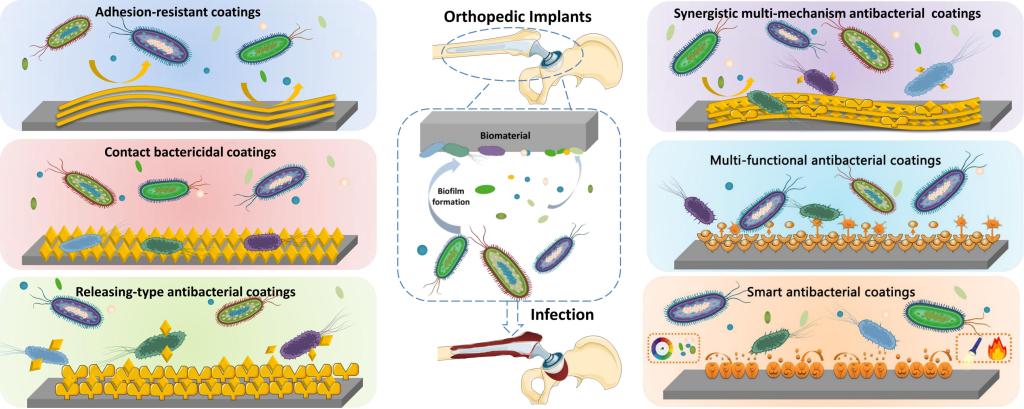该论文发表于生物材料领域国际著名学术期刊Materials Today Bio上,该期刊在最新的中国科学院SCI期刊分区表中属于医学1区期刊。针对骨科植入体表面细菌感染导致植入手术失败的临床问题,论文系统研究了骨科植入体表面抗菌涂层的设计原理和构建方法,为预防和治疗骨植入体细菌感染提供了新策略。鉴于本论文成果,科研团队从骨科植入体细菌感染机理出发,研发了具备抗菌、促成骨、促血管形成以及良好耐磨性等多功能生物医用涂层,为开发高性能骨科植入体提供理论依据和技术支持,具有显著的经济和社会效应。