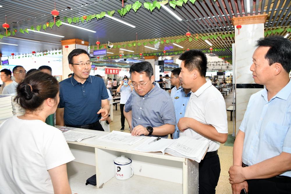 佘俊臣一行前往石鼓校区两个学生餐厅,实地察看就餐环境,详细了解饮食管理“日管控、周排查、月调度”情况,重点对食品加工售卖档口、食品安全“主体责任”公示和学生服务监督台等进行检查指导。