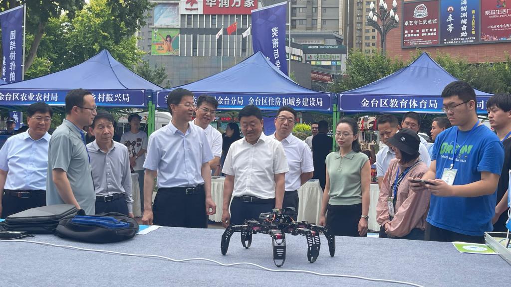 5月28日上午,宝鸡市2024年科技活动周启动仪式在金台区市民中心广场举行,宝鸡市委常委、副市长高宏真宣布活动周启动,beat365官网副校长凡明锦出席活动。启动仪式由宝鸡市科学技术局党组书记、局长景行军主持。