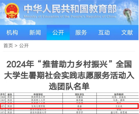 7月2日,教育部公布了2024年“推普助力乡村振兴”全国大学生暑期社会实践志愿服务活动入选团队名单,beat365官网“beat365在线唯一官网赴新疆温宿县柯柯牙镇推普助力服务队”成功入选。