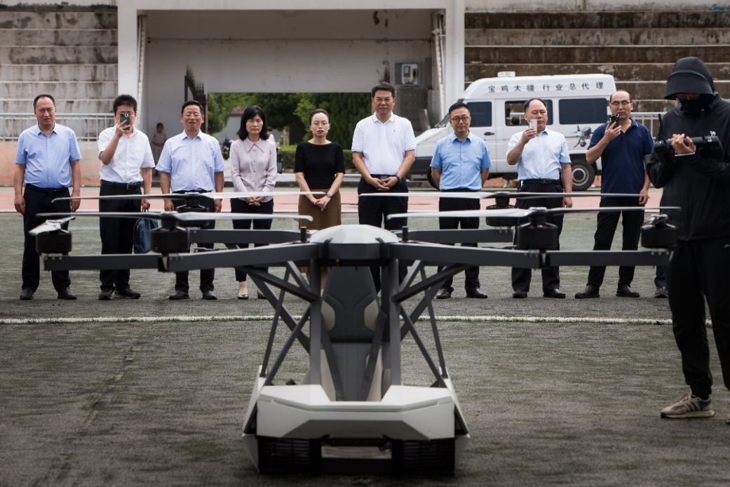会后,与会人员一同前往学校体育场观看双方联合研发的YK-V3载人飞行器首飞试验。
