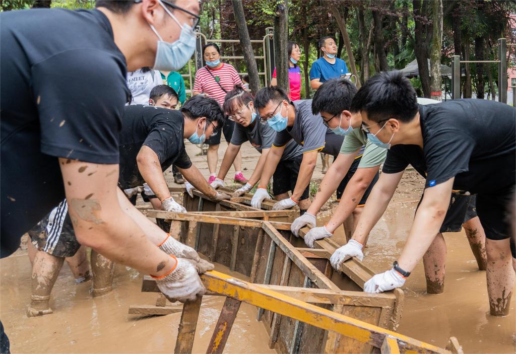 面对灾情,学校离退休老同志主动请缨组成救援小分队,每天轮流派出人员加入清淤队伍,其中年纪最大的接近八旬,他们不顾年老体弱,与年轻人一道奋战在义务劳动现场,极大调动和鼓舞了其他参加清淤任务的年轻师生。