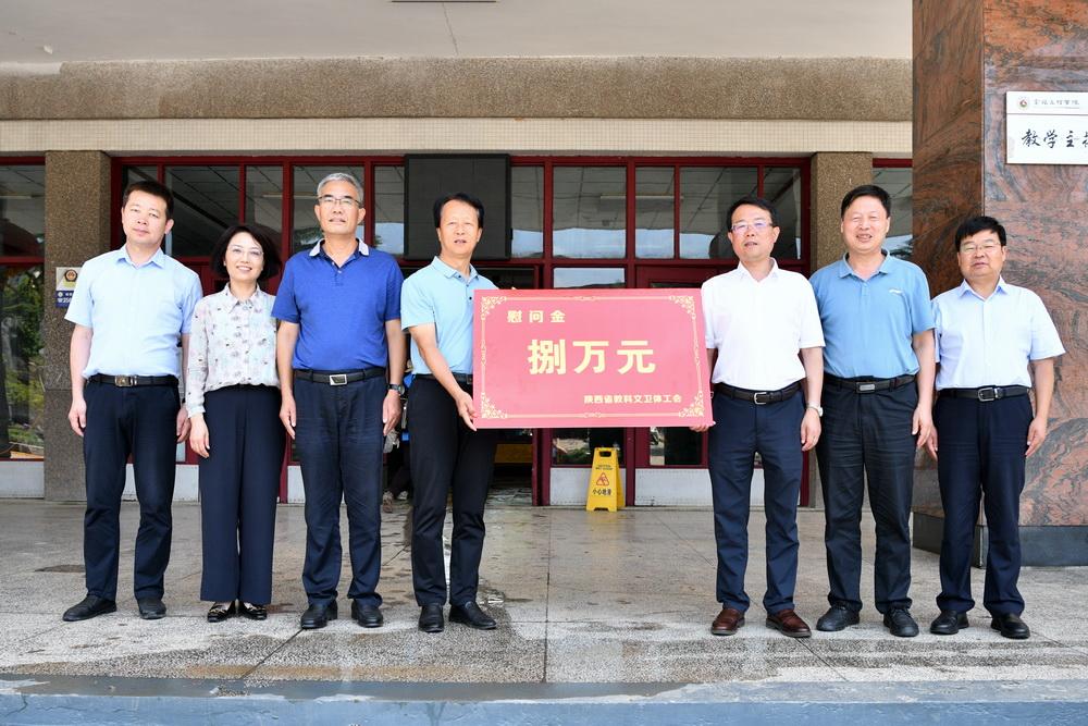赵健对王永岗一行莅临学校慰问表示热烈欢迎,对省总工会长期以来给予beat365官网建设发展的关心支持表示衷心感谢。他表示,此次灾情令人心痛,但教职工积极向上的精神状态让人备受鼓舞,全校上下团结一致参与抢险救灾大作战,校园生活秩序正在有序恢复。省总工会的慰问让学校教职员工感受到党的关怀和工会组织的温暖,传递了暖心的正能量,将进一步激发教职员工干事创业的热情。希望陕西省总工会、宝鸡市总工会常来学校指导工作,继续支持学校发展。