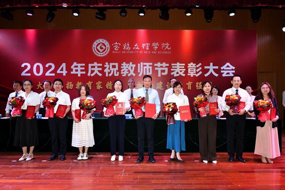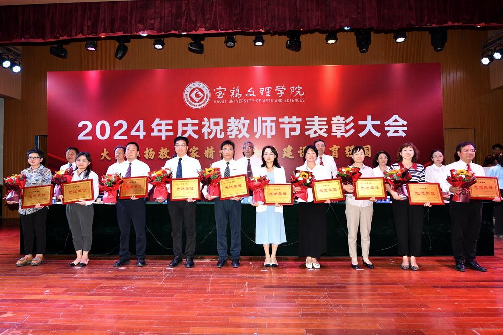 赵健代表学校党委向全体教职工致以节日问候,向所有受到表彰的教师表示祝贺,向长期以来为学校建设发展作出突出贡献的离退休老教师表示衷心感谢。他指出,强国必先强教,强教必先强师。学校66年建校历程中,涌现出很多兢兢业业、坚守平凡、无私奉献的优秀教师和教育工作者,铸就了学校今日的辉煌。今年暑期,学校遭受建校以来最为严重的自然灾害,再次展示了宝文理人平常时候看得出来、关键时刻站得出来、危急关头豁得出来的精神风貌。他强调,广大教职员工要深刻领会教育家精神的核心内涵,大力弘扬教育家精神,以更加奋发有为的精神状态投身教育强国建设实践中。一要进一步坚定理想信念。要坚持国家至上、民族至上、人民至上,厚植学生爱党、爱国、爱社会主义情怀,培养更多堪当民族复兴重任的复兴栋梁、强国先锋。二要进一步陶冶道德情操。每个教师都要以身作则地践行社会主义核心价值观,不断提升道德水准和个人修养,争做“经师”与“人师”的统一者,努力成为被社会尊重的楷模、世人效法的榜样。三要进一步涵养育人智慧。充分发挥教育引领人、温暖人、凝聚人、感召人、教化人的精神力量,让每个学生都有人生出彩的机会。四要进一步秉持躬耕态度。要提高科技创新本领,把论文写在强国建设的宏伟章程中,把实验做在民族复兴的壮美画卷上,努力成为基础研究的主力军和重大科技突破的生力军。五要进一步厚植仁爱之心。要有“捧着一颗心来,不带半根草去”的奉献精神,把对学生的爱、对学校的爱、对教育的爱、对家国的爱融为一体,用清澈的爱去润泽学生、塑造学生。