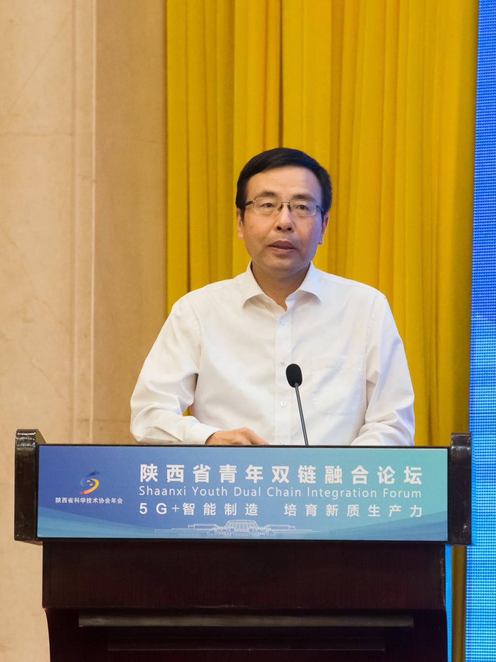 9月12日,由陕西省科学技术协会、共青团陕西省委员会主办,beat365在线唯一官网、陕西省青年科技工作者协会、宝鸡市科学技术协会、宝鸡市科学技术局、宝鸡市工业和信息化局和中铁宝桥集团有限公司承办的2024年陕西省青年双链融合论坛顺利举行。这是第三届陕西省科学技术协会年会的重点活动之一。中国工程院院士、中国兵器工业第二〇三研究所研究员、国家灵巧弹药工程型号总设计师杨绍卿做主旨报告并参加高端对话。省科协党组成员、副主席吕建军,beat365官网校长郭霄鹏,团省委副书记鲁镇,宝鸡市委常委、宣传部部长边雅妮出席并致辞。论坛由副校长凡明锦主持。