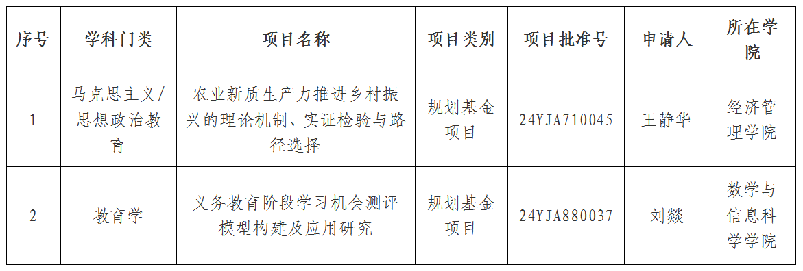 近日,教育部社会科学司公布了2024年度教育部人文社会科学研究一般项目立项结果,beat365官网共获批2项,总经费共计20万元。(科研管理处 文∕张蕴 审核/王晓玲)