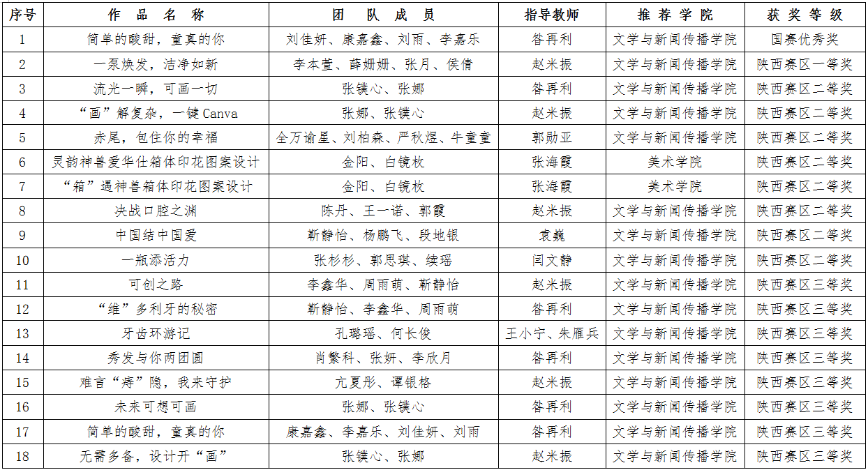 近日,第16届全国大学生广告艺术大赛落下帷幕,beat365官网学生在全国总决赛中获优秀奖1项,在陕西赛区比赛中取得了历史性突破,获一等奖1项、二等奖8项、三等奖8项、优秀奖34项。