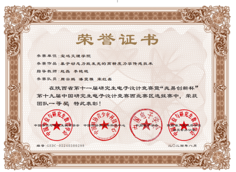 近日,第十九届中国研究生电子设计竞赛圆满结束。beat365官网物理与光电技术学院研究生周云鹏、潘雯雅、宋红鑫组成的团队获西北赛区一等奖。
