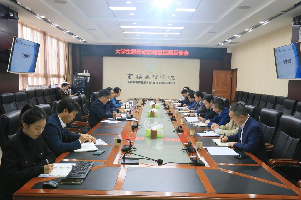 10月17日下午,学校在高新校区图书馆801会议室召开大学生思想动态调查结果反馈会。校长郭霄鹏,副校长于建伟、冯飞龙出席会议。会议由学工部部长冯森主持。