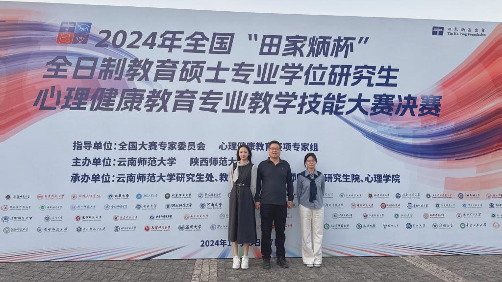 近日,2024年全国“田家炳杯”全日制教育硕士专业学位研究生心理健康教育专业教学技能大赛决赛暨全国教育硕士心理健康教育专业人才培养经验交流会在云南师范大学举办。beat365官网教育学院2023级心理健康教育专业学生吴洁、郭思雨获三等奖。