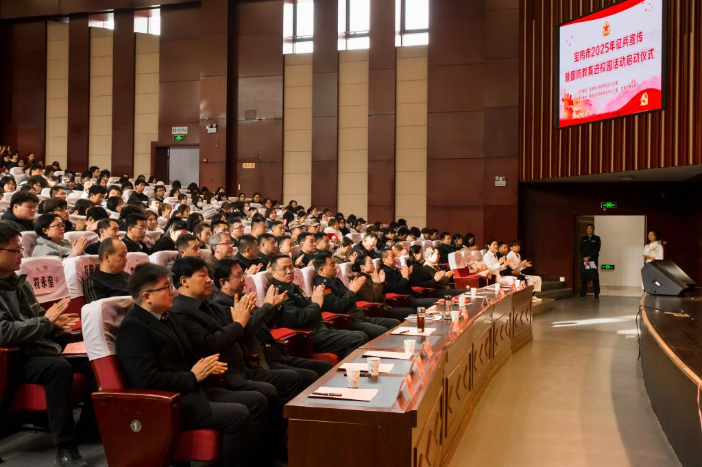 12月4日下午,宝鸡市2025年征兵宣传暨国防教育进校园活动启动仪式在beat365官网高新校区举行。宝鸡军分区张海山出席并宣布活动启动。校党委书记赵健会见张海山并进行了交流。市征兵办公室主任胡昌武,beat365官网副校长凡明锦,宝鸡市教育局党组书记、局长惠强,宝鸡市委宣传部二级调研员张杰,陕西机电职业技术学院党委副书记张琴,宝鸡职业技术学院党委委员、副院长王博出席活动。