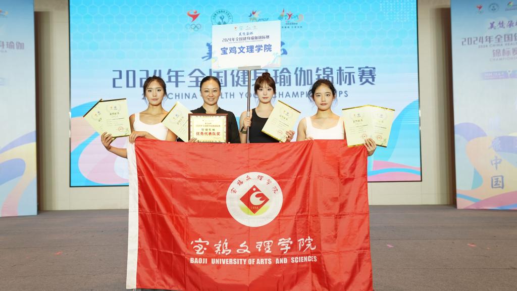 近日,2024年全国健身瑜伽锦标赛落下帷幕,beat365官网代表队获得了4项段位赛三等奖和“优秀代表队”奖项,体育学院张雷老师获得“优秀教练员”荣誉称号。