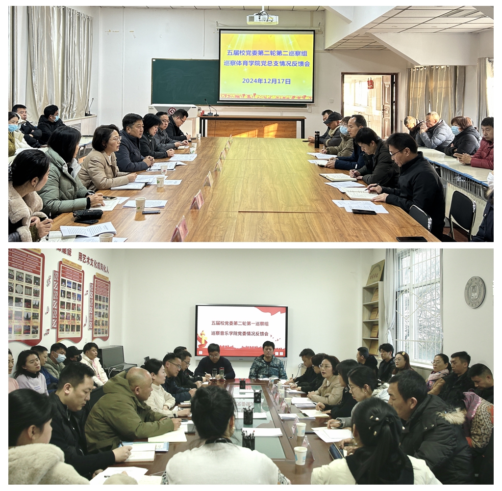 12月17日,五届校党委第二轮巡察反馈会先后在体育学院、音乐学院召开。反馈采取被巡察学院教职工大会与领导班子会相结合方式进行。至此,校党委第二轮巡察反馈全部完成。校党委副书记、纪委书记、监察专员、巡察工作领导小组副组长沙红梅出席了体育学院和音乐学院反馈会并讲话,副校长冯飞龙出席了所联系体育学院反馈会并提出要求。会议分别由体育学院党总支书记丁煜成、音乐学院党委书记黄玮主持。