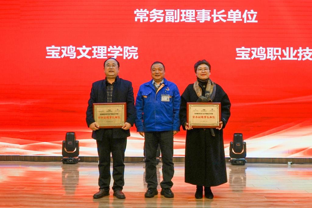 申雪峰代表省委教育工委、省教育厅对联合体、共同体的成立表示热烈的祝贺,对长期以来支持学校发展的宝鸡市委、市政府和相关企业行业表示衷心的感谢。他指出,党中央、国务院作了深化产教融合改革部署,党的二十届三中全会又作了加快构建职普融通、产业融合职业教育体系重大部署,委厅按照省委、省政府要求,在产教供需对接,校企协同育人等方面,鼓励校地校企努力探索产教研融合发展新路径,学校要加强顶层设计,夯实制度基础;要健全协作机制,形成工作合力;要坚持目标导向,提升服务能力,谱写好产教融合、校企校内合作新篇章。