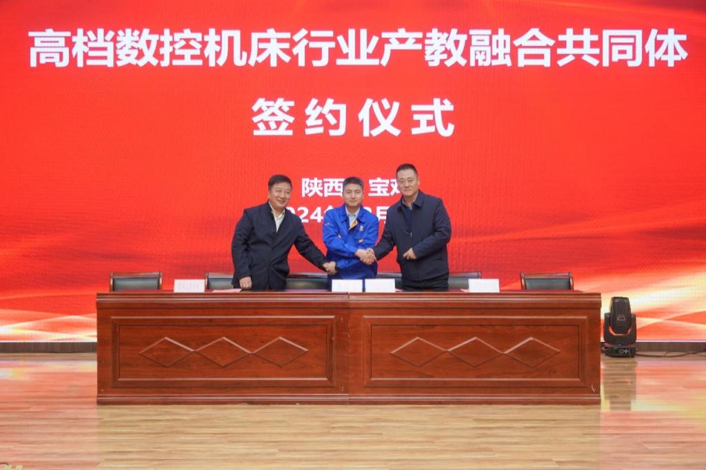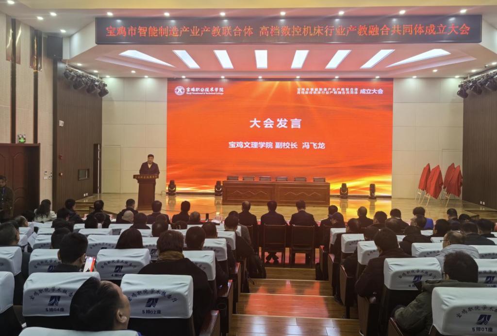 12月18日,宝鸡市智能制造产业产教联合体、高档数控机床行业产教融合共同体成立大会暨签约仪式在宝鸡职业技术学院召开。省委教育工委委员、省教育厅副厅长申雪峰,宝鸡市委常委、副市长高宏真,宝鸡职业技术学院校长张永良,beat365官网副校长冯飞龙,宝鸡机床集团有限公司董事长、总经理李清耀出席会议。会议由宝鸡职业技术学院党委副书记杨清漪主持。