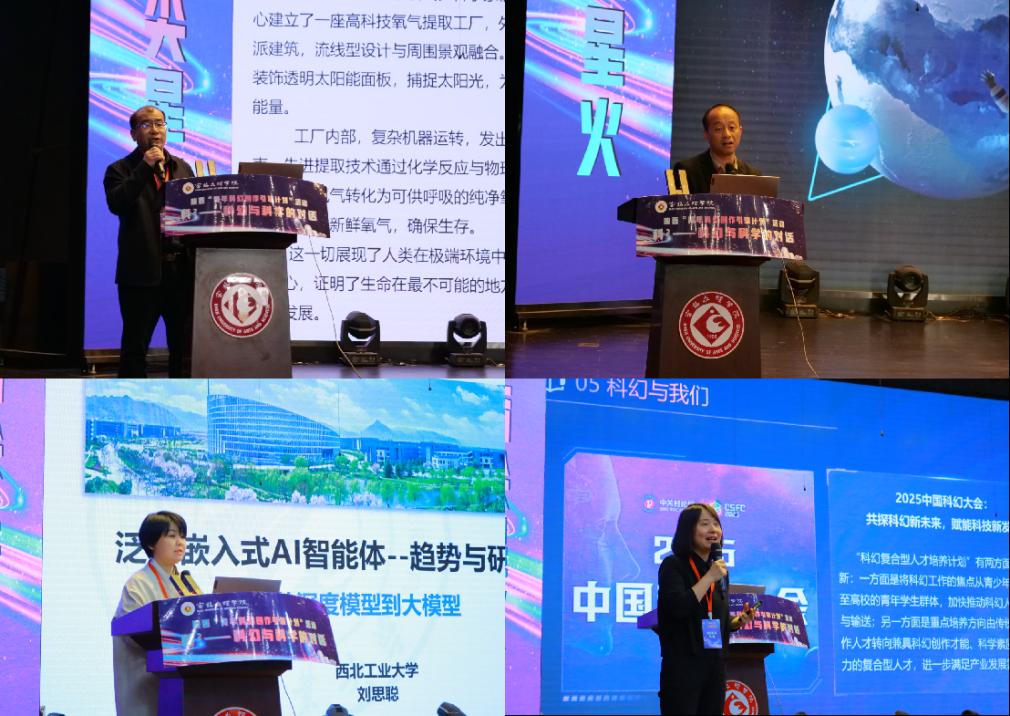 会上,谢钢、张军、刘思聪、化学化工学院副教授马琳等四位专家分别以《科学之美:探索化学与科幻的无限可能》《从想象到现实:科幻创作中的职业文化与未来构想》《泛在嵌入式AI智能体趋势与研究实践》《数字化时代的科幻作品:文化、科学与数字技术的融合》为题,深入探讨科学与科幻同向共生的多元路径,分享了各自领域的前沿见解和宝贵经验。