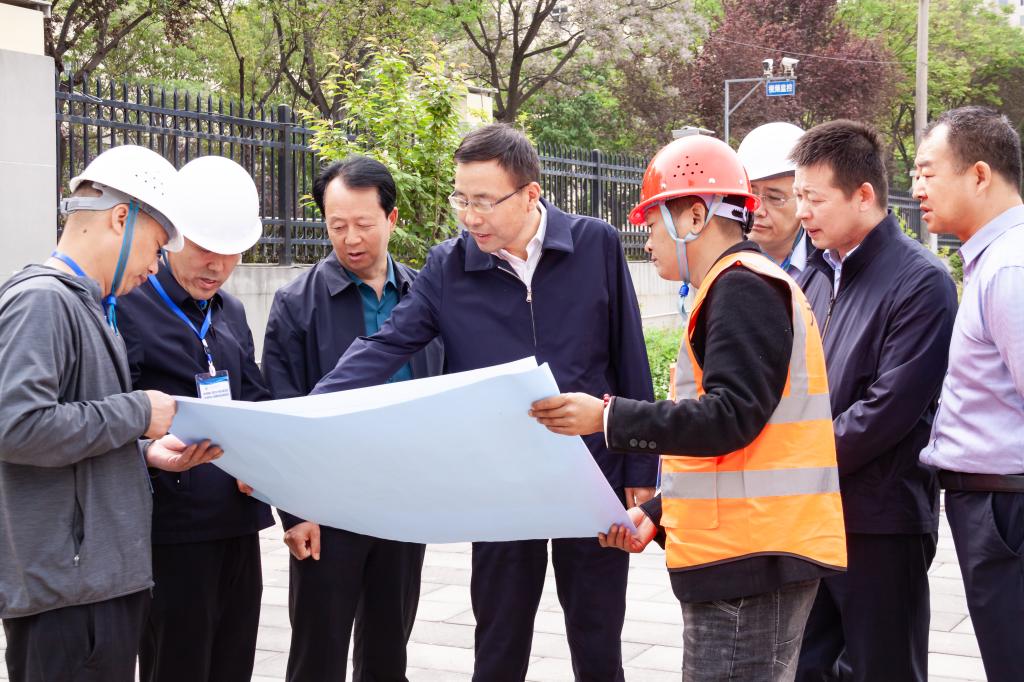 4月25日上午,校党委书记、校长郭霄鹏,副校长于建伟深入高新校区实地检查指导学生公寓空调配电增容、安装工程进展和学生食堂食品安全工作。
