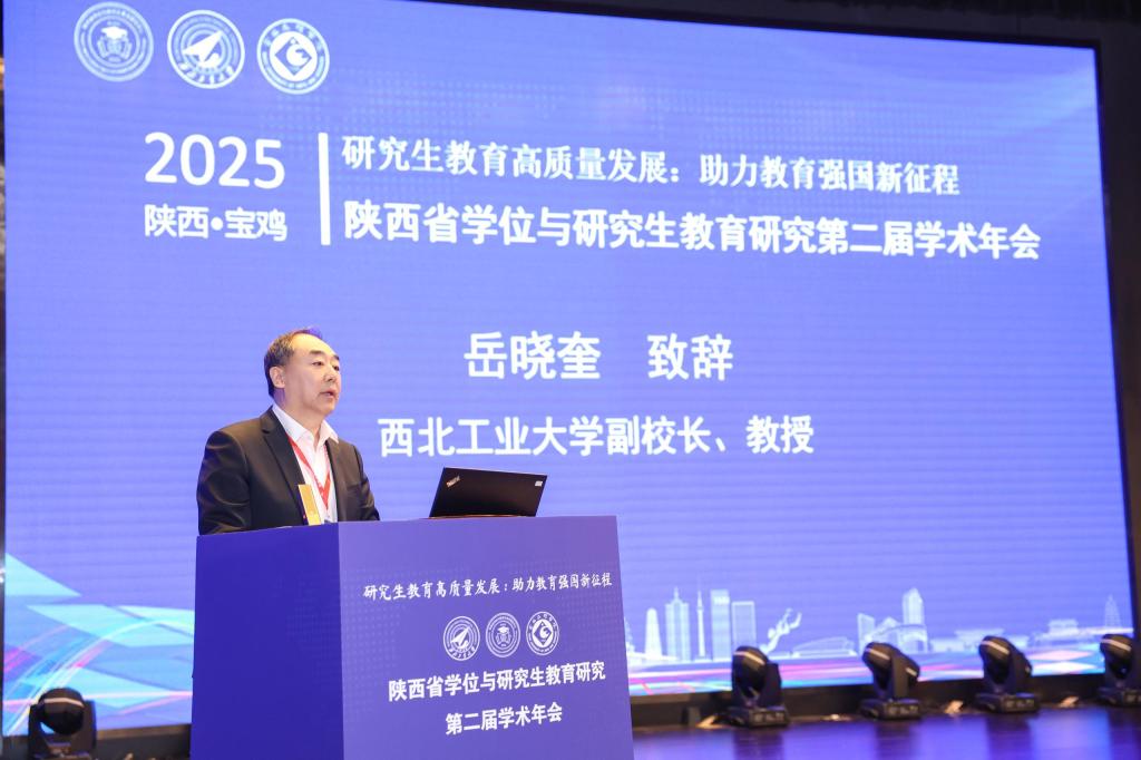 4月26日,由beat365官网承办、陕西省学位与研究生教育研究中心和西北工业大学主办的陕西省学位与研究生教育研究第二届学术年会在beat365官网召开。西北工业大学党委常委、副校长岳晓奎,陕西省委教育工委、省教育厅二级巡视员张和平出席开幕式并致辞。校党委书记、校长郭霄鹏出席会议并致辞,副校长凡明锦参加会议。
