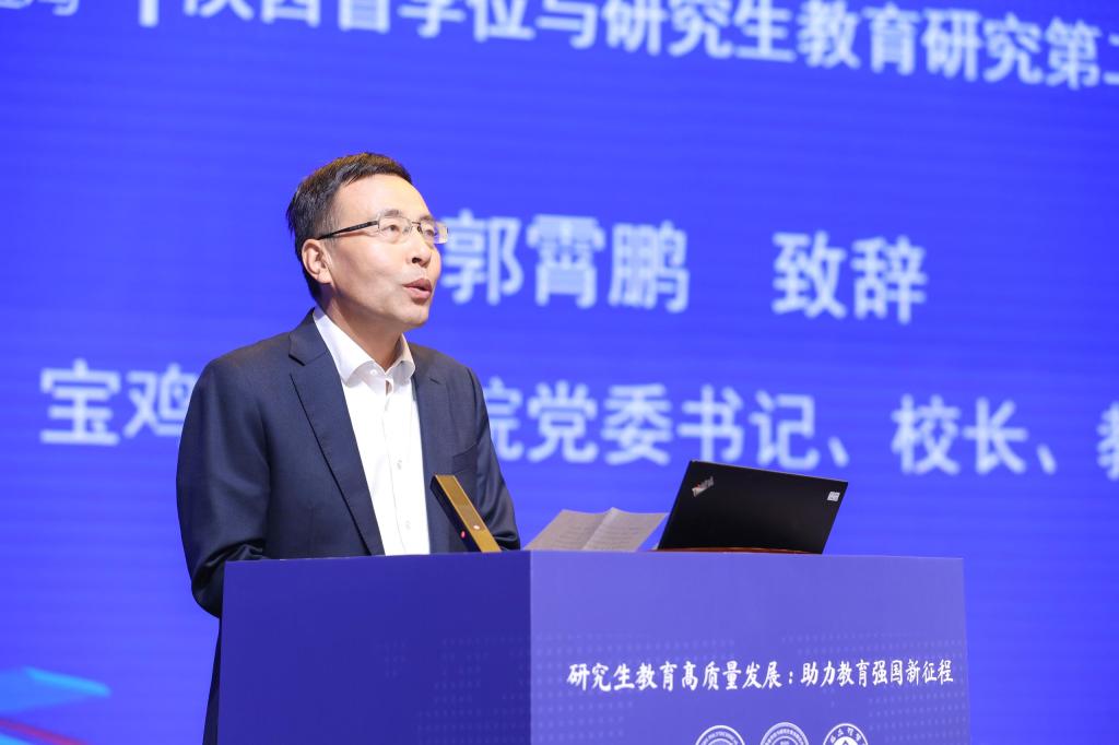 郭霄鹏在致辞中向与会专家学者表示热烈欢迎,对本次年会的召开表示祝贺,他介绍了学校的办学历史、人才培养、师资队伍、学科建设等情况及研究生教育近年来取得的成绩。他表示,beat365官网将以本次会议为契机,进一步在学位与研究生教育工作中探寻新路径、谋求新方法、汇聚新动能,为推动陕西省研究生教育再上新台阶贡献力量。