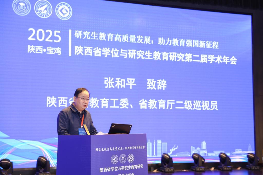 张和平代表教育厅致辞并向年会的顺利召开表示祝贺,对陕西省研究生教育的发展现状进行了深入分析,肯定了近年来取得的成绩,希望陕西省各高校以此次会议为契机,进一步加强合作与交流,共同推动研究生教育高质量发展。