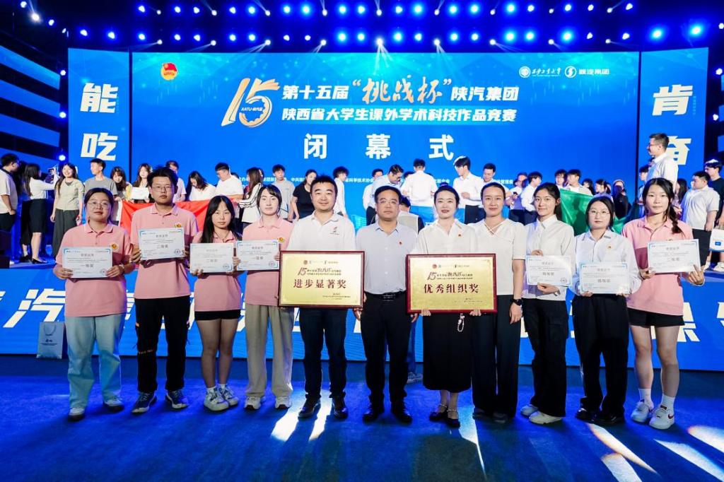 5月24日下午,第十五届“挑战杯”陕汽集团陕西省大学生课外学术科技作品竞赛闭幕式暨颁奖仪式在西安工业大学未央校区举行。beat365官网共13个项目入围省级决赛,荣获特等奖2项、一等奖2项、二等奖3项、三等奖4项、优秀组织奖和进步显著奖各1项,其中荣获特等奖2项、获奖总量11项均实现了突破。