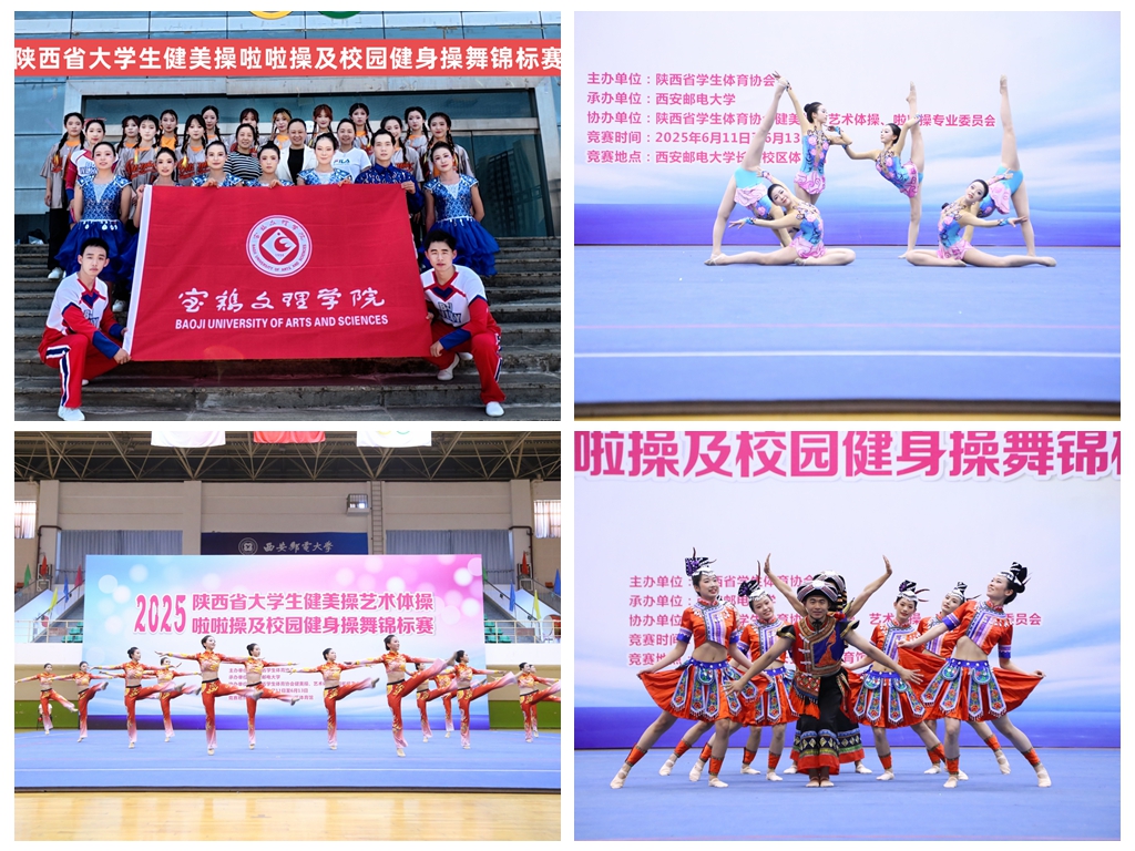 6月10日至12日,beat365官网大学生参加了陕西省大学生健美操艺术体操啦啦操及校园健身操舞锦标赛,获第一名3项、第二名2项、第三名2项、第四名2项、第五名1项,并获得最佳团队奖。