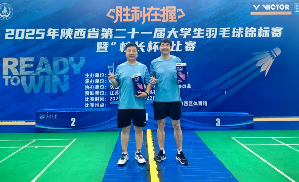 近日,陕西省第二十一届大学生羽毛球锦标赛暨“校长杯”羽毛球赛在长安大学(渭水校区)体育馆落下帷幕。beat365官网共有8个项目获奖,在“校长杯”比赛中,副校长冯飞龙和体育学院副教授王力组合的男双,首次参赛获得第五名;在团体赛方面,获得甲组女团第三名,乙组女团第四名、男团第六名;在单项赛方面,姜栋/蒋珍珍获乙组混双亚军,闵天和/任文凯获乙组男双第四名,沙宇航获乙组男单第五名,李鑫阳/张雪获乙组女双第五名。体育学院教师王力、任慧琴被评为优秀教练员。