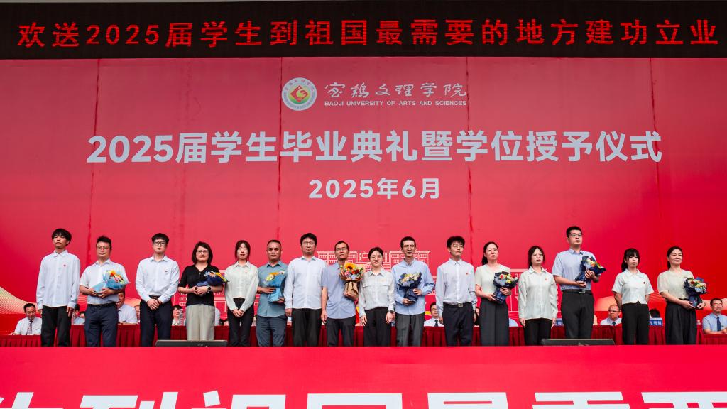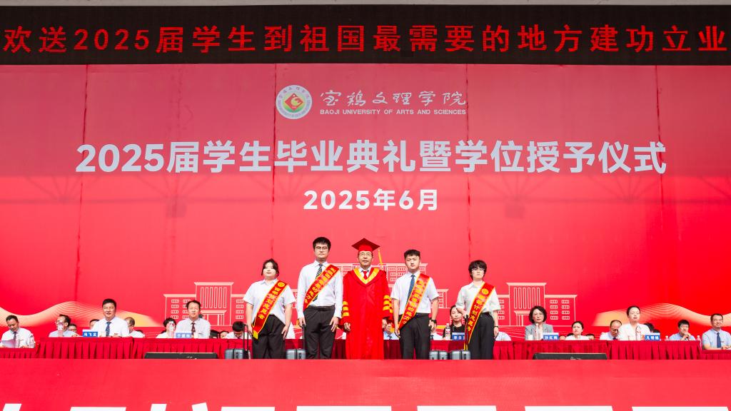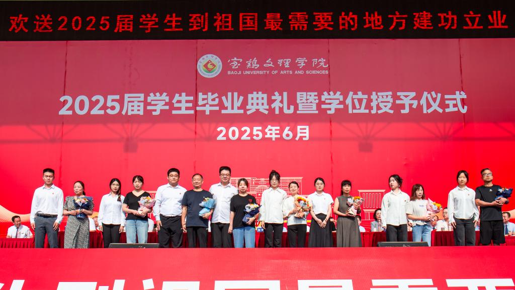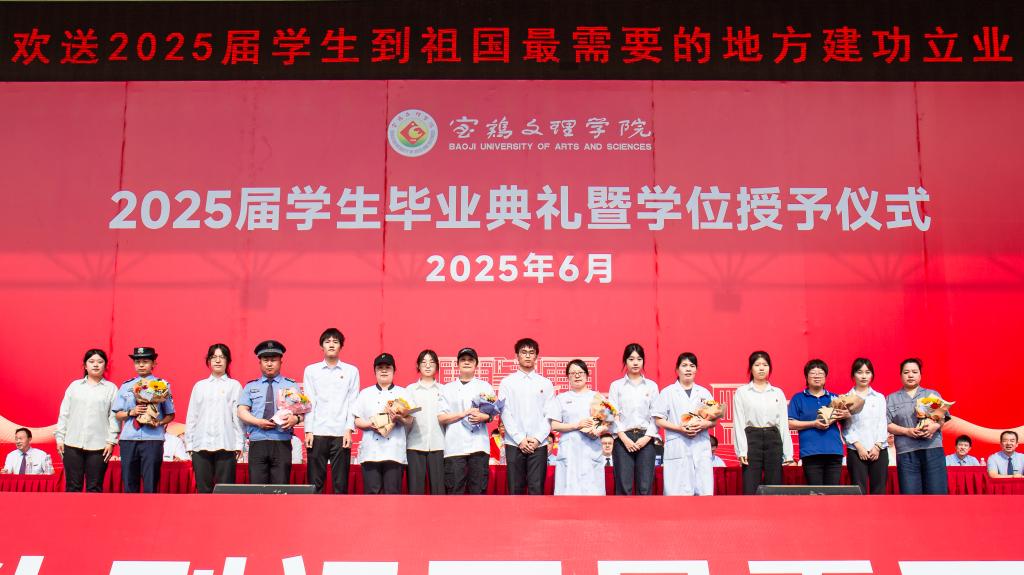 冯飞龙宣读了2025届毕业资格审查结果、学位授予决定和校级优秀毕业生表彰决定。学校党政领导为校级优秀毕业生代表颁发荣誉证书,为西部计划志愿者佩戴绶带。毕业生代表为教师代表、家长代表和育人服务代表献花,表达诚挚谢意。