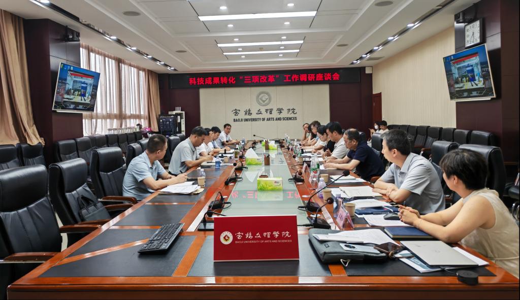7月25日下午,宝鸡市委副书记段小龙一行来校调研科技成果转化“三项改革”工作。副校长凡明锦出席座谈会,宝鸡市委副秘书长李广恒主持会议。