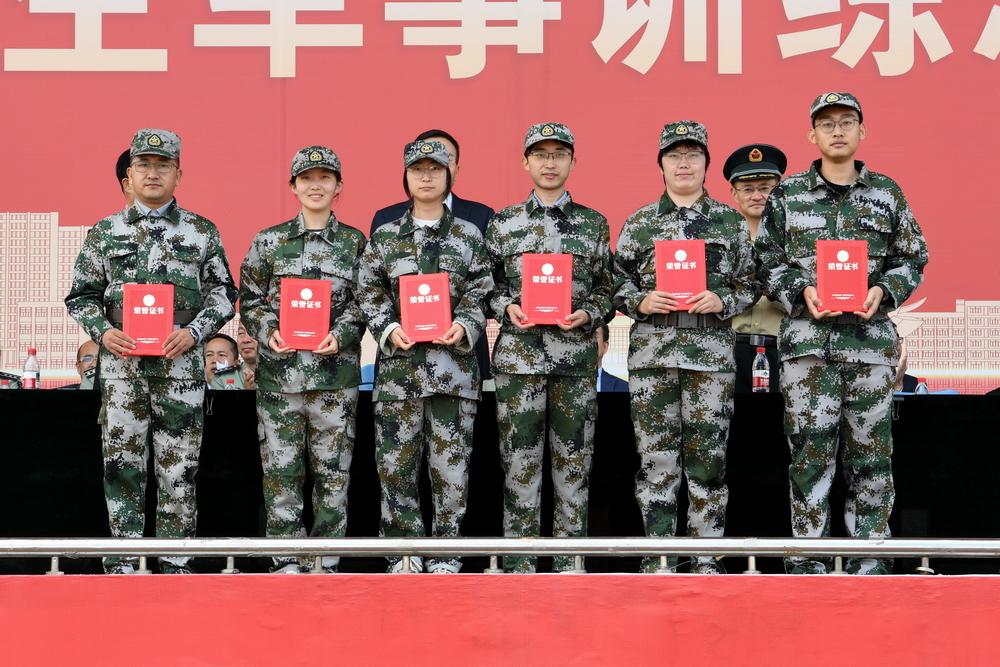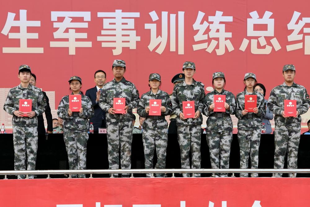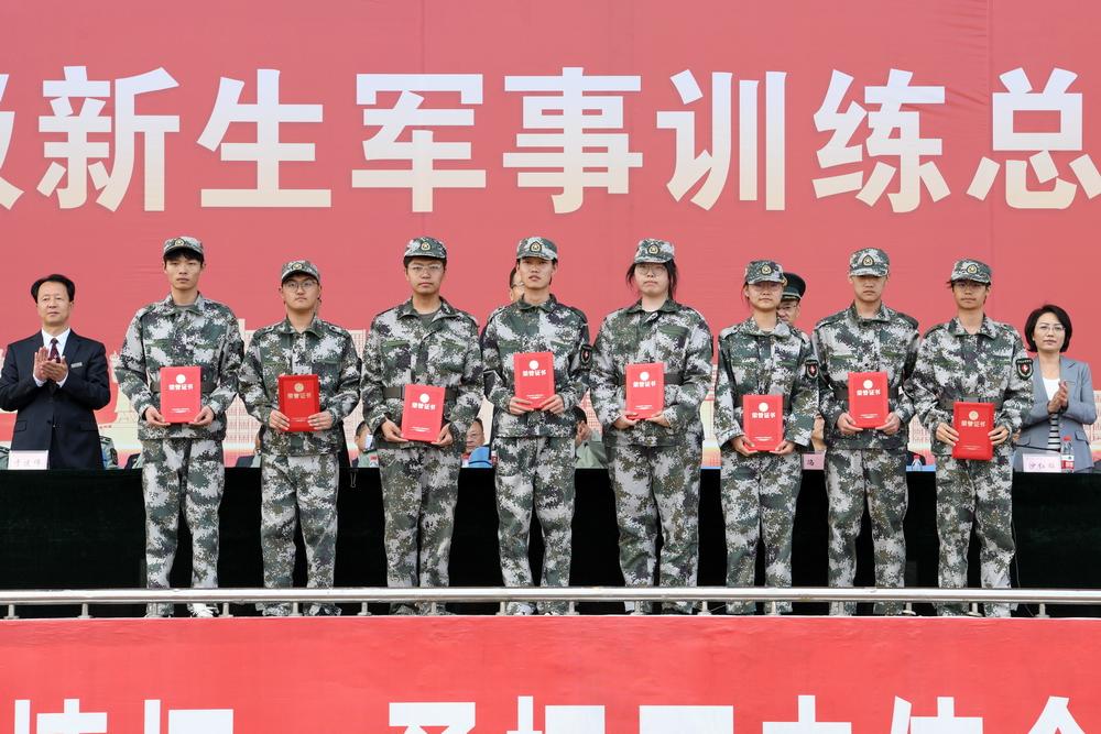 学校领导、承训单位领导为军训工作先进单位、优秀教官、优秀指导员、军训标兵、内务卫生模范宿舍、内务标兵的单位和个人颁发了奖状和证书。