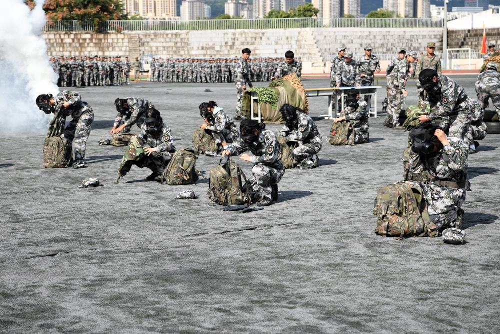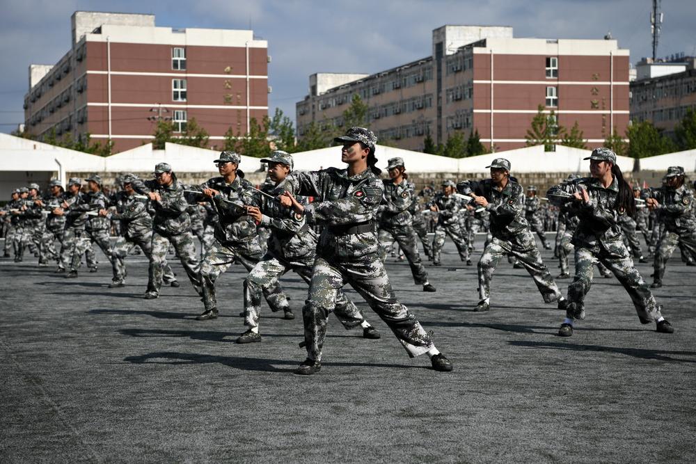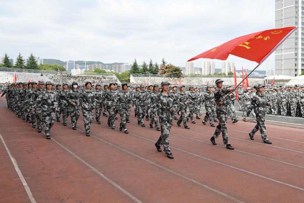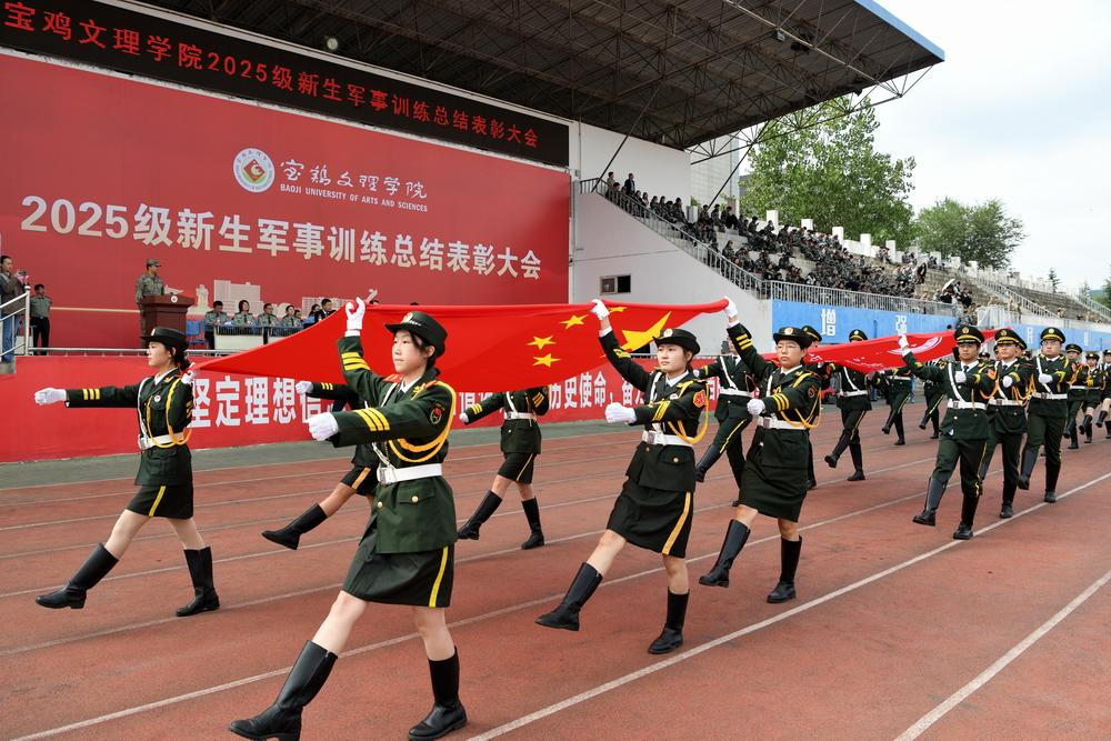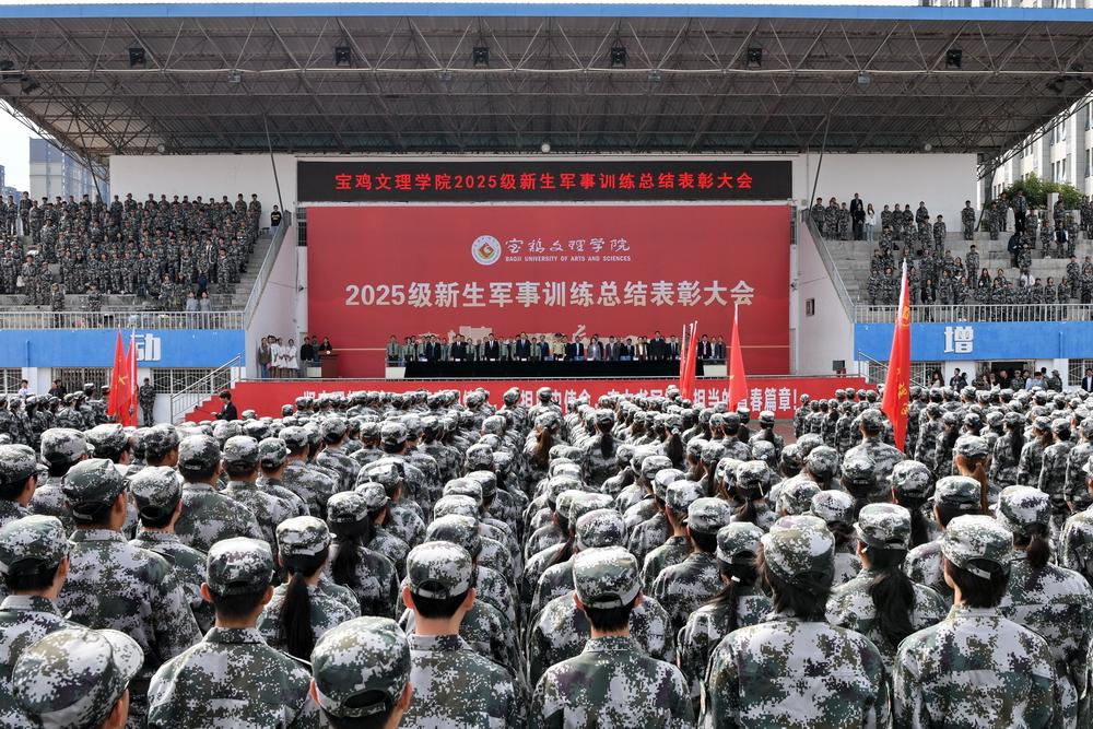 2025级新生组成23个迷彩方阵,以挺拔的军姿、铿锵的步伐、嘹亮的口号,接受检阅;女子方队排出校训“博文明理、厚德尚能”、我爱宝文理等字样;男子刺杀操、女子匕首操、擒敌拳、队列队形科目、整理内务和紧急集合科目、核防护、战场战术等项目一一展示在大家面前,展现了朝气蓬勃的青春活力和意气风发的精神风貌,全方位汇报了为期两周的军训训练成果,奏响了文理学子的时代强音。