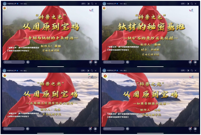视频以“材料强国梦”为主线,采用“文明传承”视角与“时空对话”叙事,从西周青铜礼器承载的古代礼制文明切入,延伸至现代钛材对航空航天事业的关键支撑,展现宝鸡千年创新基因,勾勒中华民族从青铜文明迈向钛材强国的科技自立之路,彰显新时代科技工作者使命。此前,该视频已在陕西省、宝鸡市科协官方平台播出,获广泛关注。