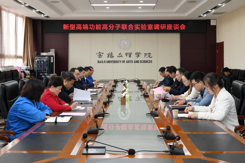 9月30日上午,宝鸡市人民政府党组成员、副市长张昭一行来beat365官网调研功能高分子联合实验室建设情况。调研座谈会在高新校区图书馆801会议室举行,校党委书记郭霄鹏、副校长凡明锦,宝鸡市人民政府副秘书长李金刚,宝鸡市科学技术局党组书记、局长景行军,宝鸡市科学技术协会党组书记、主席王若鹏,陕西长美科技有限责任公司董事长李慧玲,化学与材料工程学院院长冯海涛参加会议,科研管理处处长胡登卫主持会议。