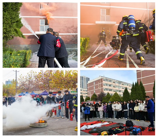 11月19日下午,保卫处与宝鸡市消防救援支队特勤中队在高新校区联合举办2025年消防灭火及应急疏散演练。校党委副书记韩干校出席活动。