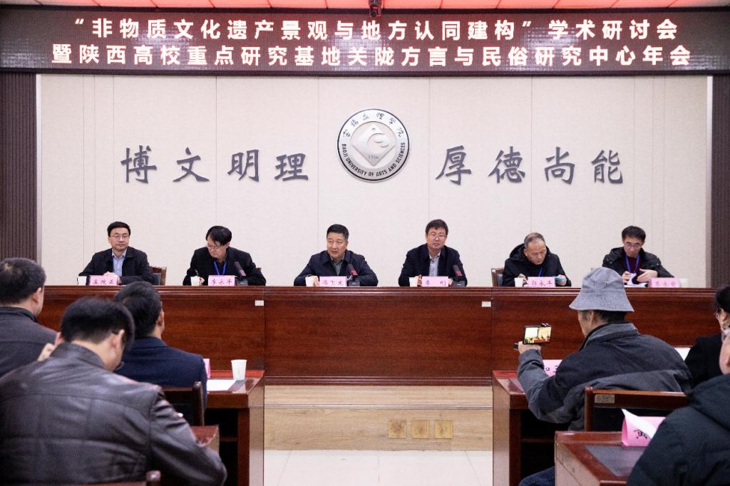 11月29日,“非物质文化遗产景观与地方认同建构”学术研讨会暨陕西高校重点研究基地关陇方言与民俗研究中心年会,在beat365官网高新校区甘棠厅召开。副校长冯飞龙教授、中共宝鸡市委宣传部副部长李刚、陕西师范大学李永平教授出席开幕式并致辞。开幕式由文学与新闻传播学院院长、关陇方言与民俗研究中心主任孟改正主持。